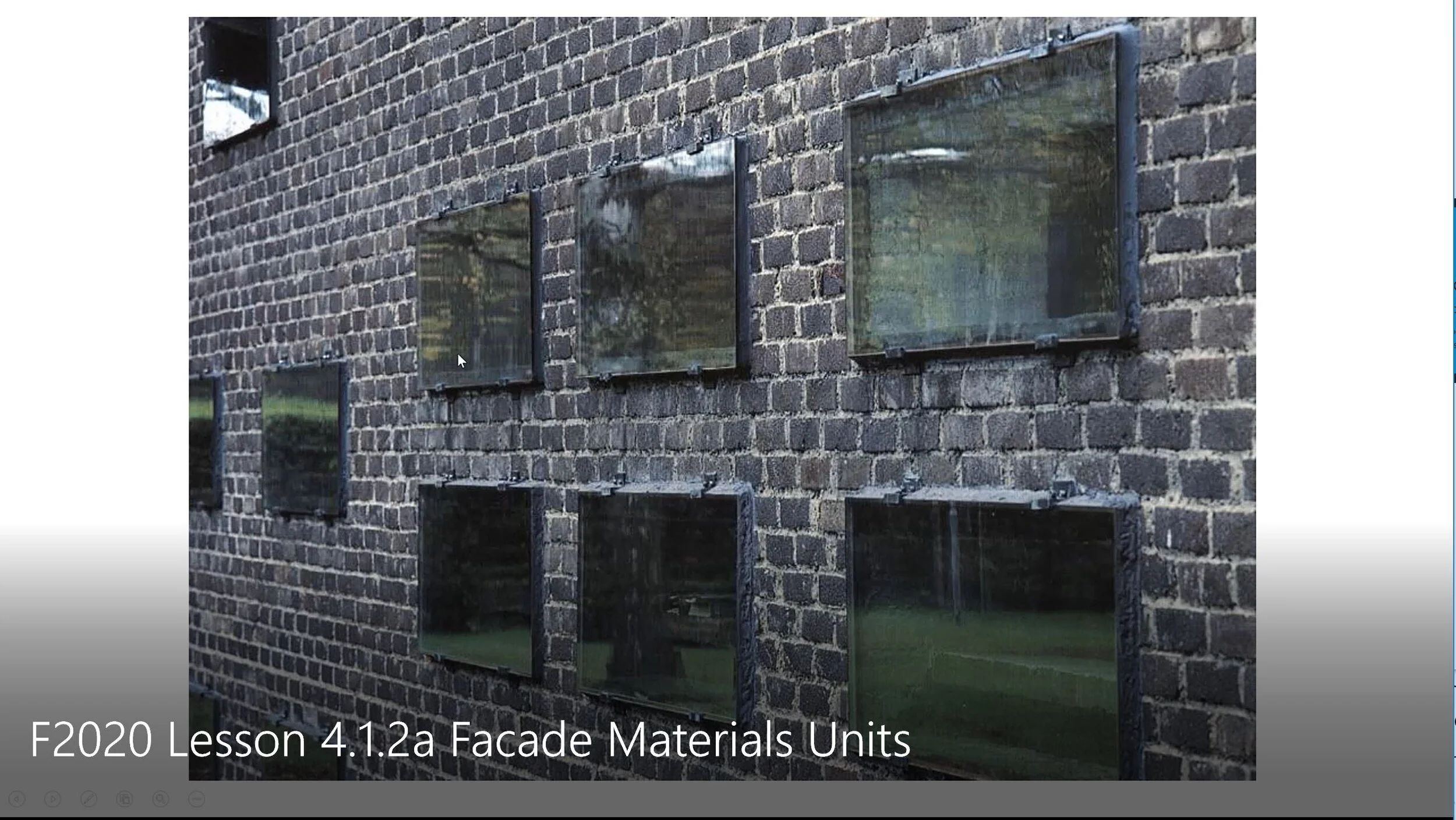 4.1.2b builds on 4.1.2a, with a focus on the façade materials and assembly systems that general are fabricated, assembled and installed in sheet or panel formats. As in Lesson 4.1.2a the lesson will present details of connections, erection tolerances and adjustments to help guide your own façade system design and the development in your studio comprehensive wall section drawings.